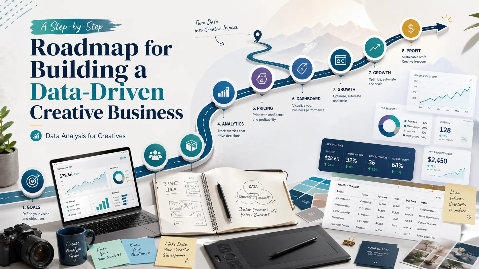 Data analysis is the process of turning raw information into useful insights. For creatives, this information can come from many places, such as social media analytics, website traffic, client feedback, sales records, portfolio views, blog performance, content engagement, or survey responses.